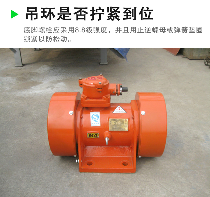 振動(dòng)機(jī)械與電機(jī)底腳接觸面的粗糙度不低于6.3;